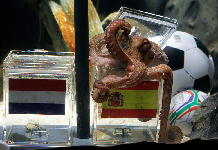 La preferida por los magufos del planeta, un pulpo con capacidades telequinésicas que le permiten ver el futuro. Probablemente todos nos tomemos a coña esta posibilidad al tiempo que nos aferrábamos con fuerza a nuestro amuleto preferido mientras veíamos el partido. Es decir, nos encanta creer en lo sobrenatural aunque nuestra mente racional diga lo contrario.
