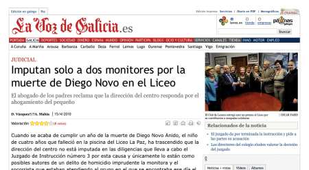 Creo que este refrán refleja como ninguno la situación de Diego Novo, el niño de 4 años que falleció ahogado en el Colegio Liceo La Paz de Coruña durante las clases de natación. Puede que hayas conocido la noticia ya que estos días se ha celebrado el juicio y está en todos los periódicos: La Voz de Galicia, El Ideal Gallego, La Opinión Coruña, etc. O sino leeros la publicación de Pili que resume el caso mejor que nadie.